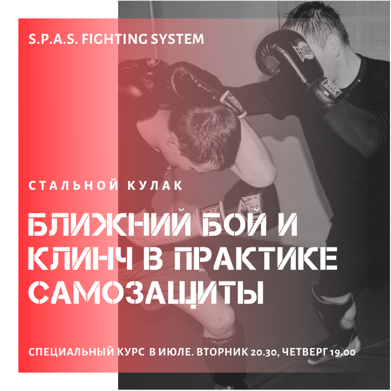 Весь июль по вторникам и четвергам работаем по программе «Ближний бой и клинч в самозащите».